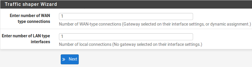 PRIQ,CBQ和HFSC可以在流量管理向导中选择,向导将显示适当的选项并根据所选的ALTQ规则创建队列。