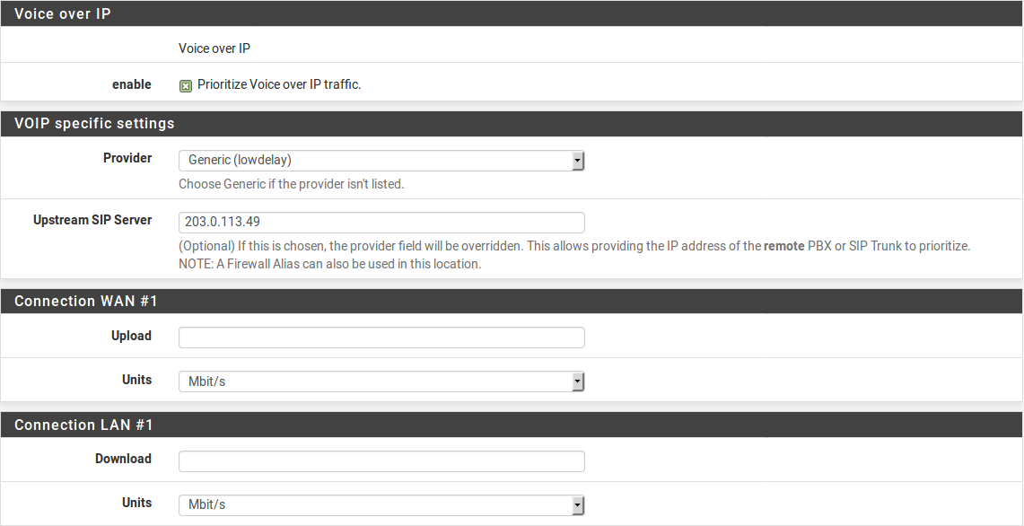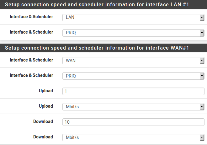 要更新WAN接口的速度(如果更改),请编辑防火墙>流量管理下的相应队列以反映新设定速度的变化。