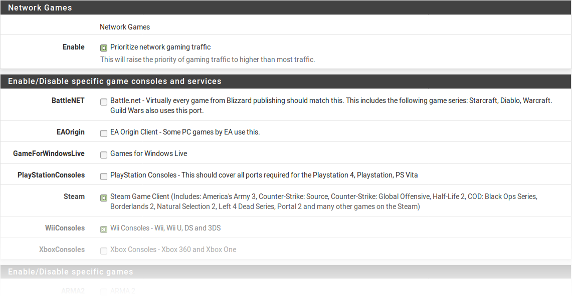 流量管理还可以选择优先考虑与网络游戏相关的流量。 与优先考虑VoIP呼叫类似,其效果是,即使网络上的用户正在播放或正在下载,游戏的响应时间仍应该几乎与其余连接闲置时一样快。