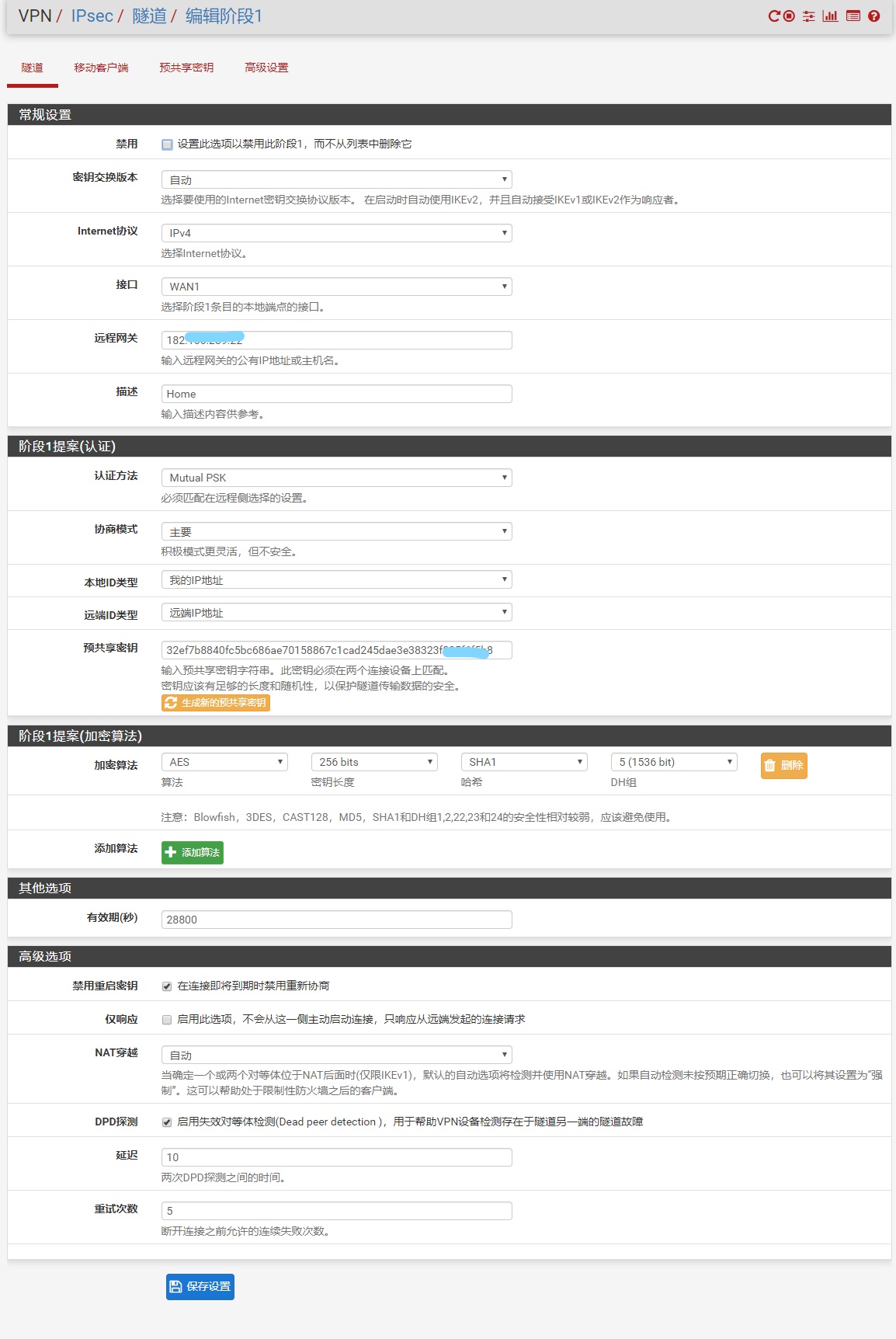 EdgeRouter X与pfSense建立IPsec连接