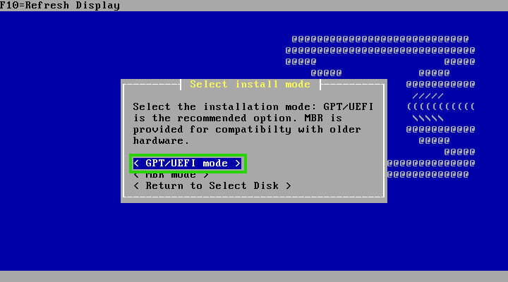 选择安装的存储设备后,用户将需要确定安装程序使用哪种分区方案(MBR或GPT/ EFI)。