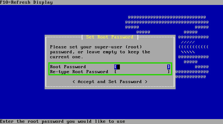 选择分区方案后,安装程序将开始安装。该过程不会花费很长时间,安装过程中会提示用户输入信息,例如root用户的密码。