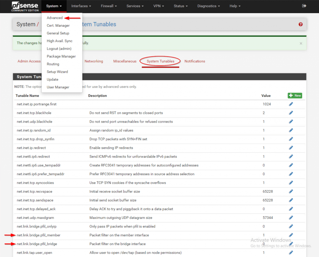 修改“net.link.bridge.pfil_bridge”的值为1,然后保存设置。