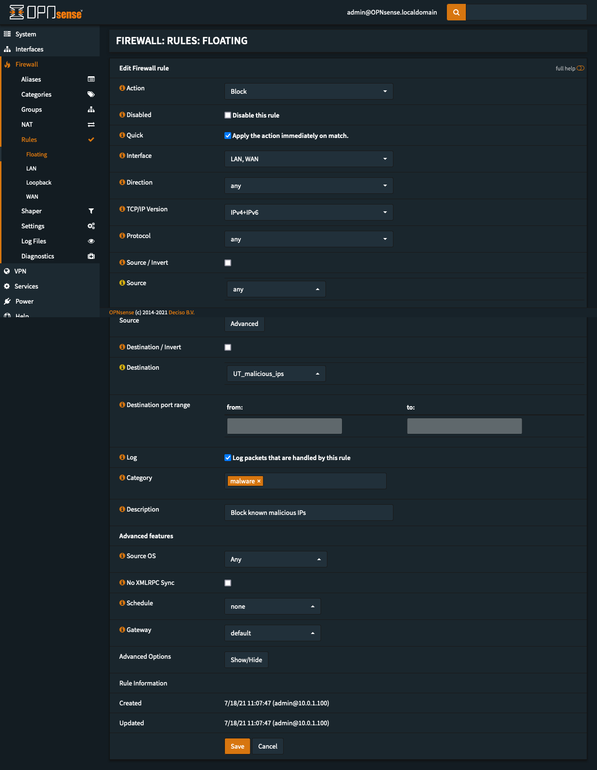 在防火墙上使用外部黑名单来阻止恶意 IP 是防火墙最常见的功能,这有助于保护内部网络的安全。当然你也可以使用DoH / DoT(基于 http 或 TLS 的 DNS)或 IPS来做这件事。但从配置的难度上来说,还是前者更方便。下面介绍一下配置方法。