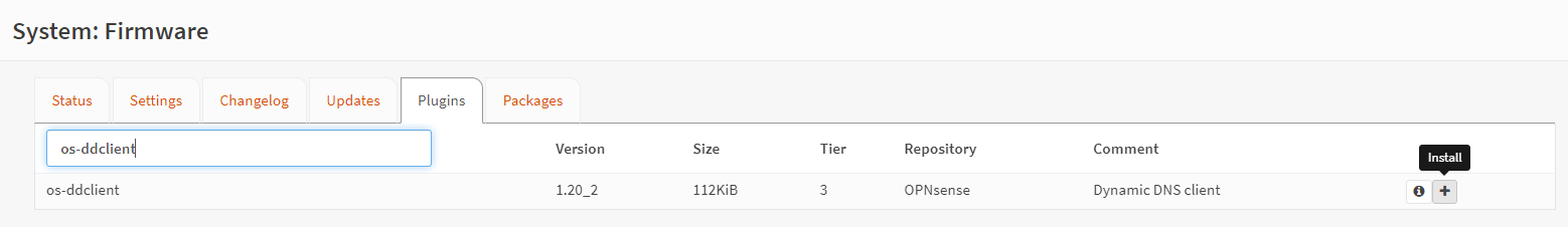 图 1. os-ddclientOPNsense 上的插件安装