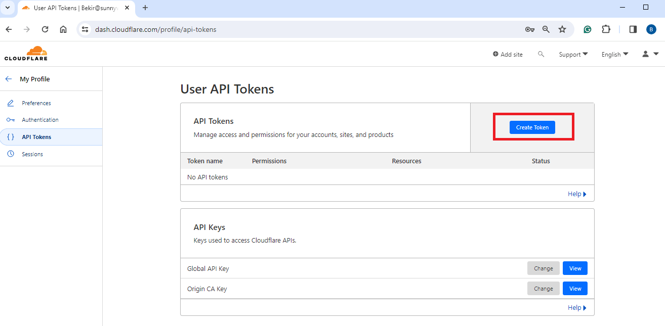 图 6. 在 Cloudflare 上获取 API 令牌