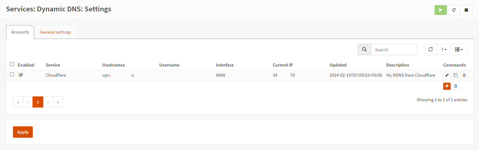 图 3. OPNsense 上的动态 DNS 常规设置