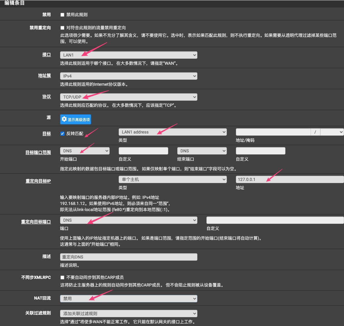 127.0.0.1 - 重定向目标端口:DNS