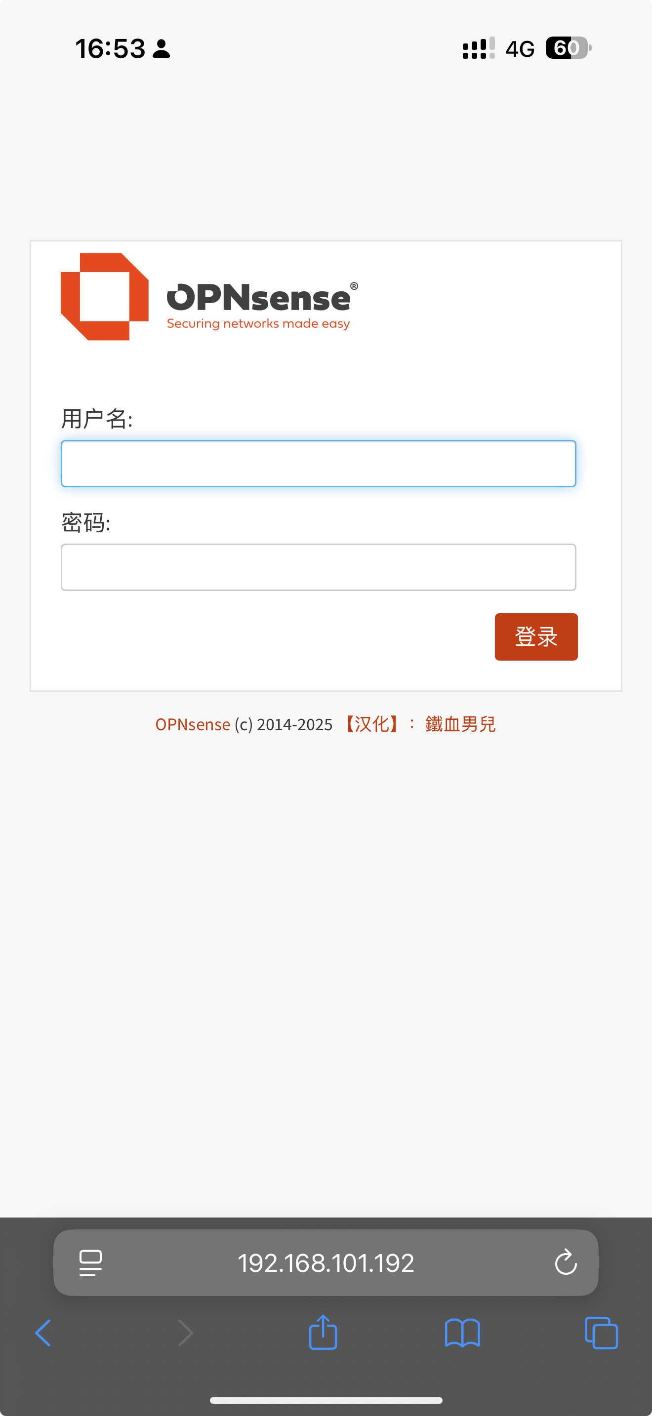 使用手机浏览器可以正常访问OPNsense: