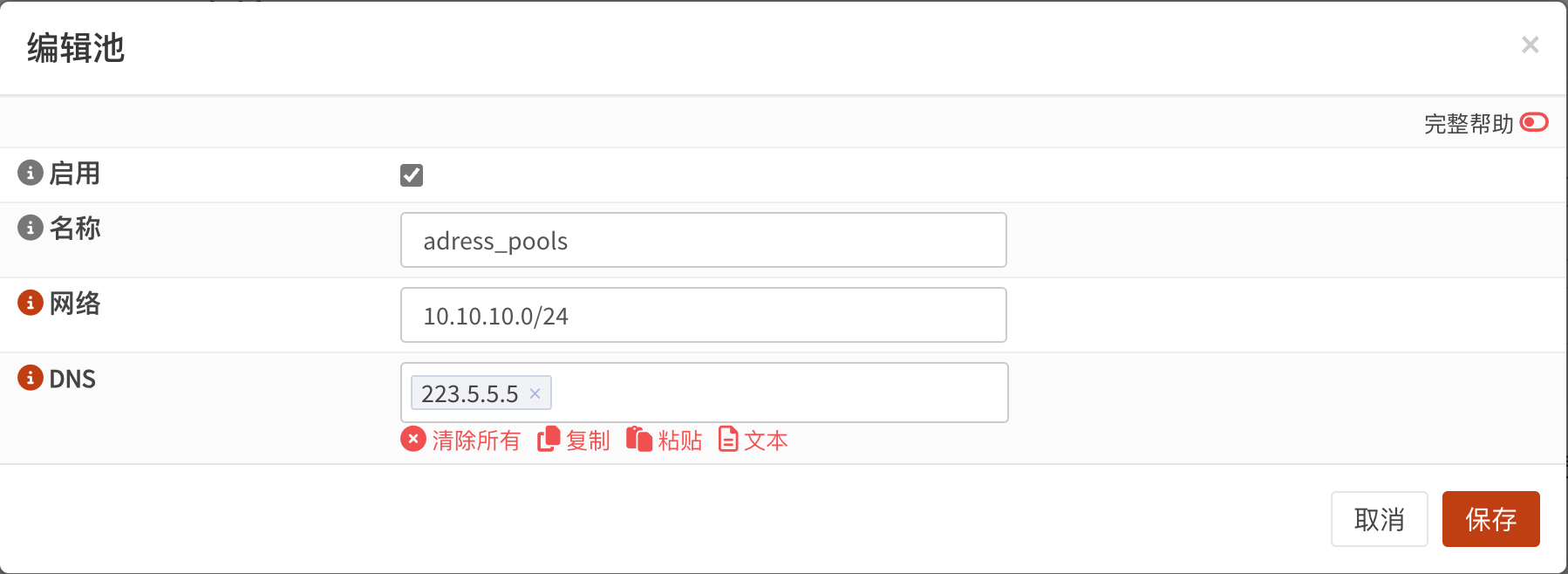 如果不想将 DNS 服务器推送到客户端,DNS字段可以留空。