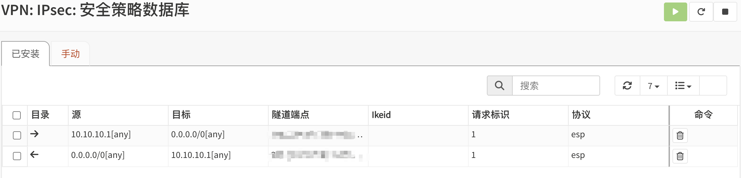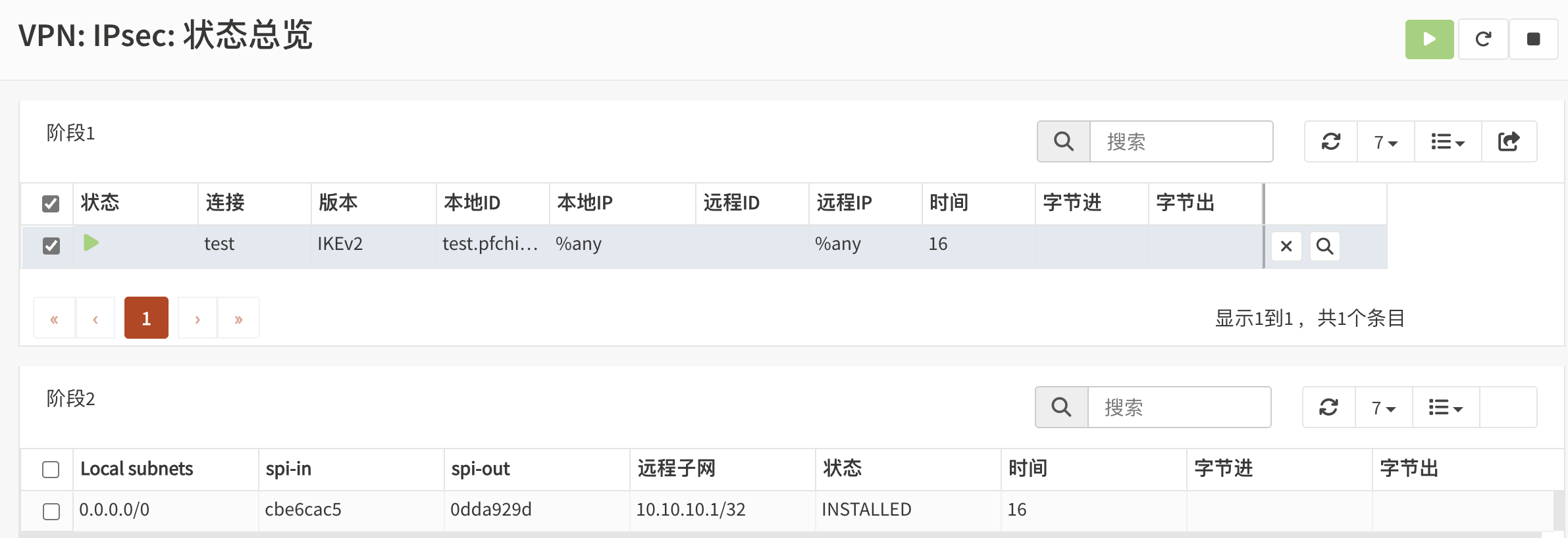 如果不能正常连接,请检查/var/log/ipsec/latest.log日志,分析排除故障。