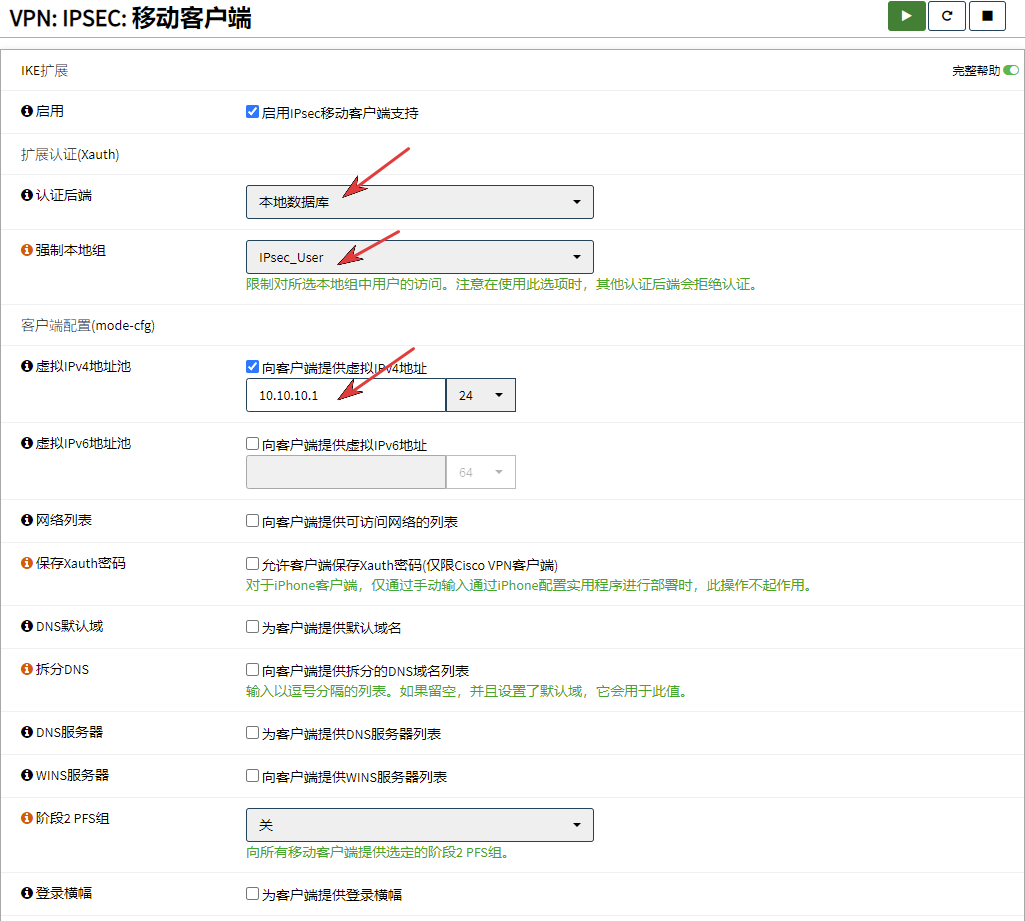 新界面配置方法请参考:OPNsense配置IKEv2远程访问教程(新界面)