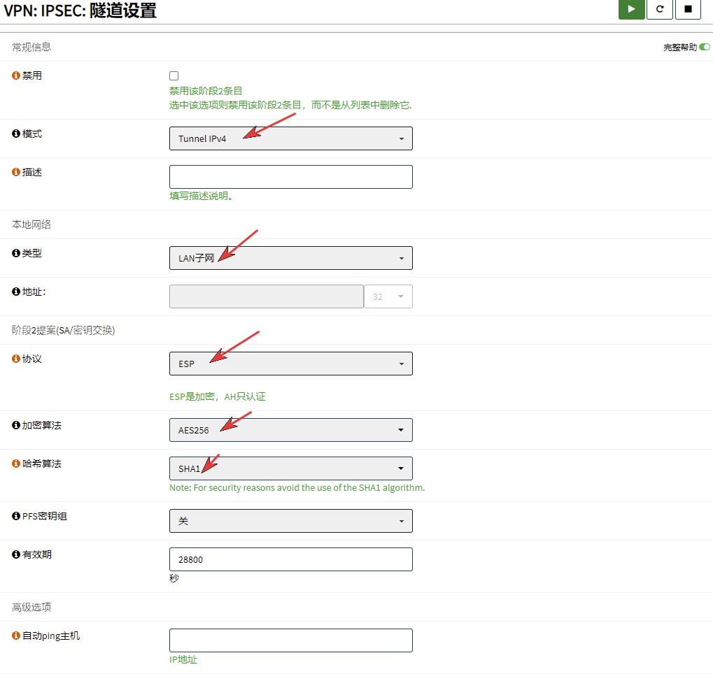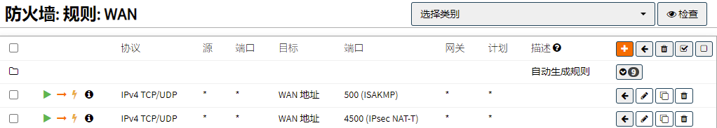 保存IPSec阶段1设置后,在列表右侧,点击“+”添加阶段2条目: