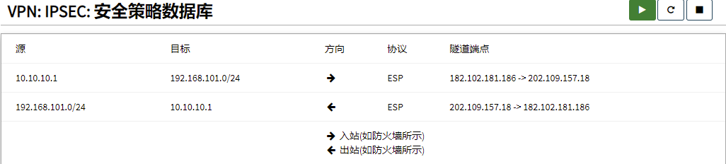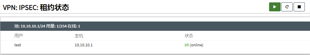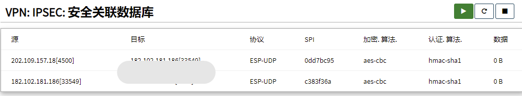 导航到VPN>IPsec>,可以查看VPN的连接状态: