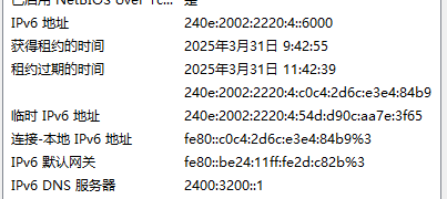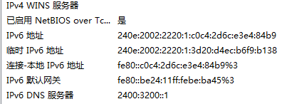在pfSense B的客户端电脑上,查看是否能获取到前缀为 240e:2002:2220:1:: 的IPv6地址。