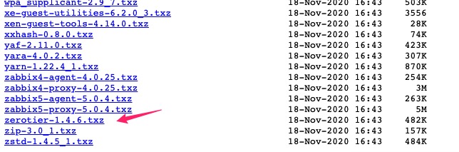 在OPNsense香港镜像仓库下载对应版本的软件包,一些共用的依赖包可以在FreeBSD的软件仓库找到。安装zerotier插件需要下载两个文件,一是应用程序文件,一个是系统安装文件(os开头的文件,用于添加菜单并进行相应设置,其他插件根据安装提示可能还需要依赖包),请根据自己的系统版本下载对应的文件。
