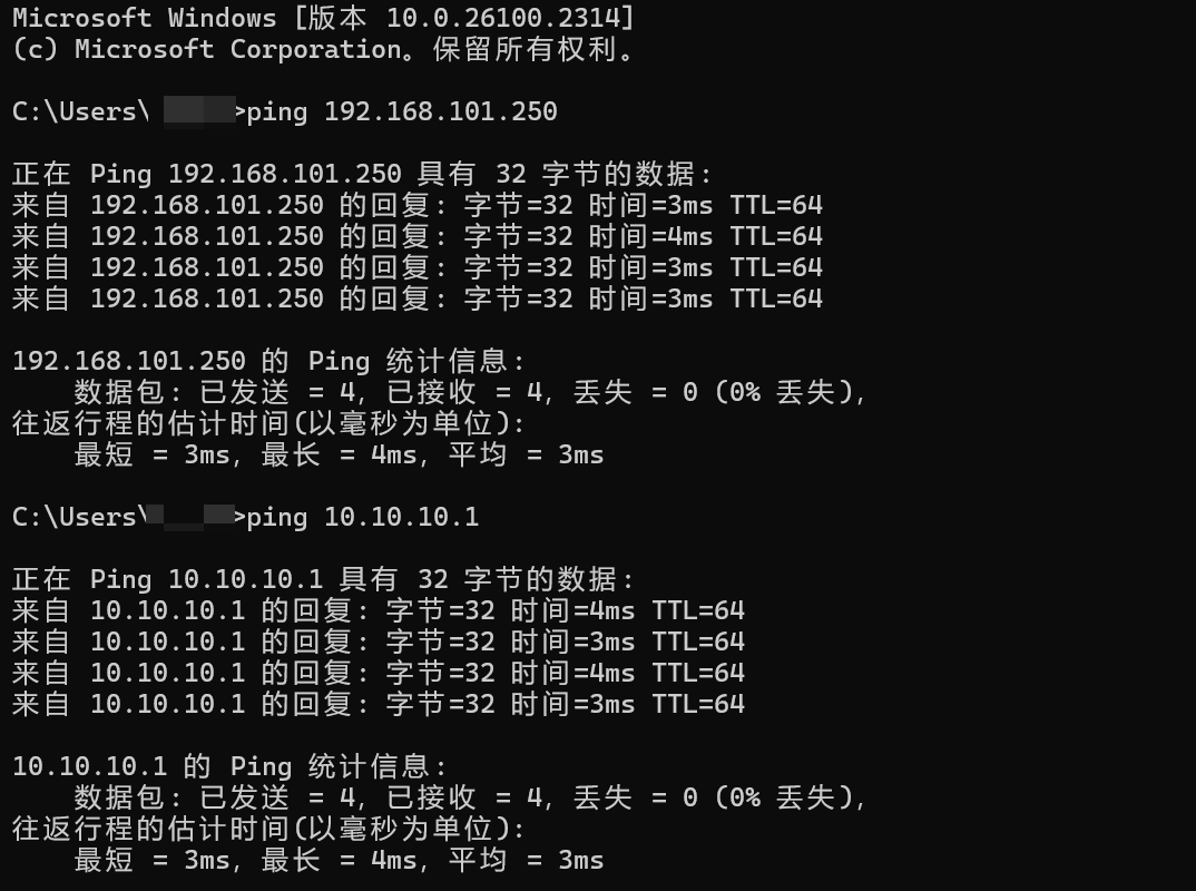 测试是否能正常访问内网资源。客户端ping防火墙LAN地址或OpenVPN隧道地址,检查是否连通。