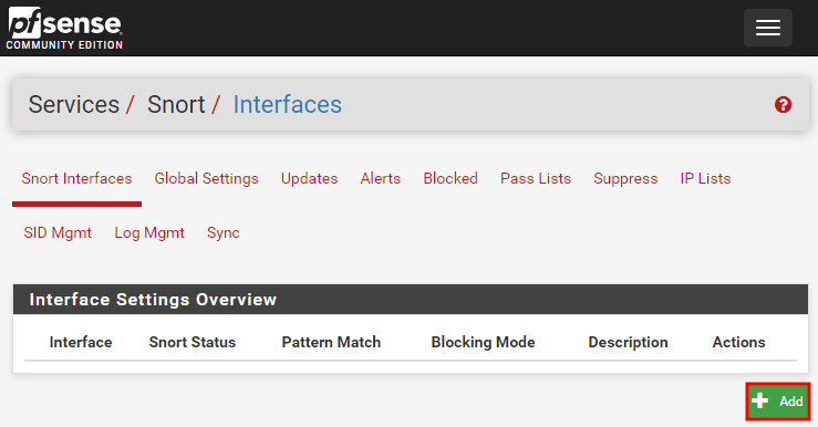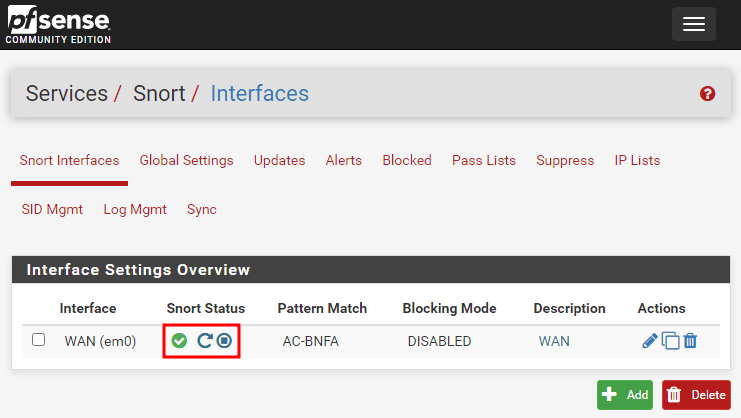 在Snort接口列表上,点击播放小图标,启用监控服务。