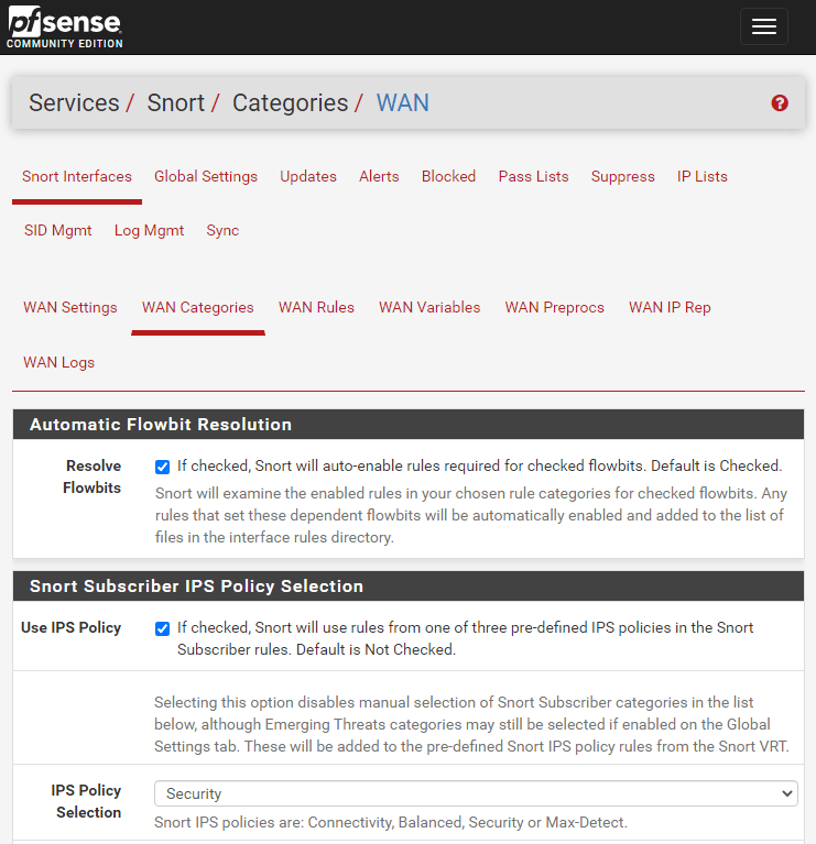 按下图所示,选中Resolve Flowbits和Use IPS Policy两个选项。