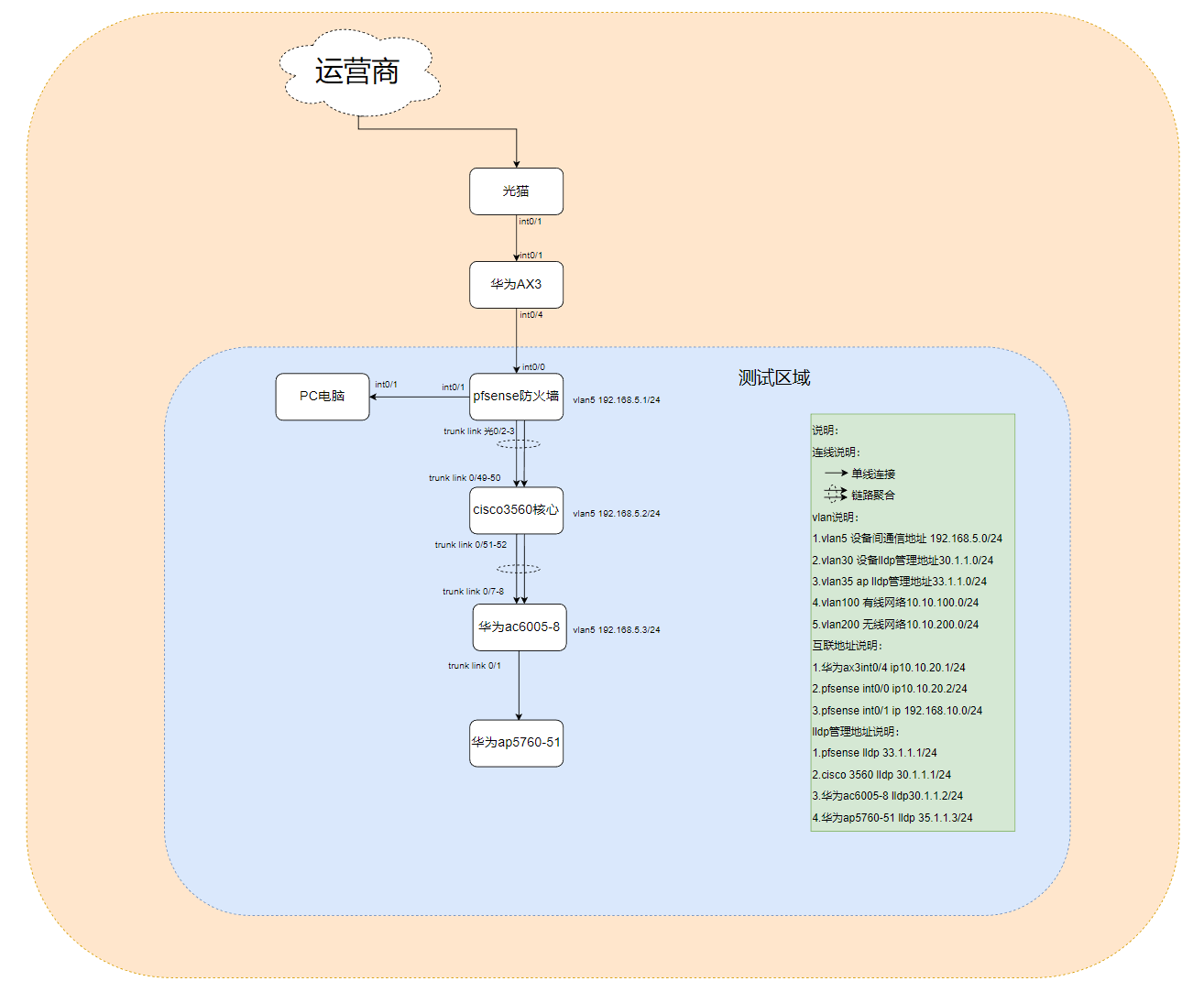 本教学涉及三方设备、防火墙pfsense、核心交换思科3560、华为ac6005-8。