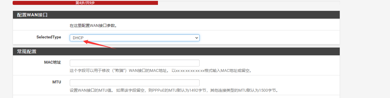第4步中dhcp指的是wan口获取上级路由的ip地址。本示例使用dhcp获取,这里可以根据自己的网络情况进行配置。
