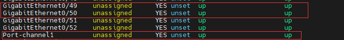 sw1-cisco3560# sw1-cisco3560#show ip interface brief #查看接口是否已经启动(up状态)查看0/49-50接口和port-channel1接口是否up即可