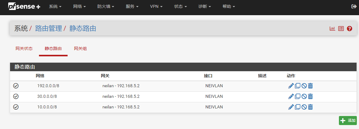 目标网络是交换机内部的vlan的网络,包含了vlan5,30,35,100,200的网络,这里填写的是8位汇总网络,或者写明详细路由都可以。