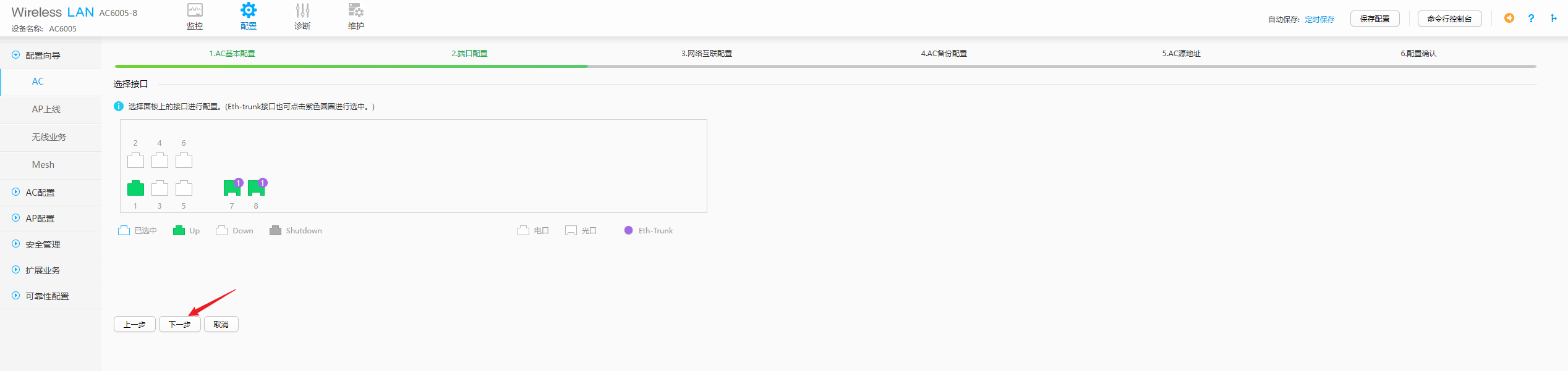 [ac6005-8-Eth-Trunk1]trunkport GigabitEthernet 0/0/7 to 0/0/8 #07-08接口加入