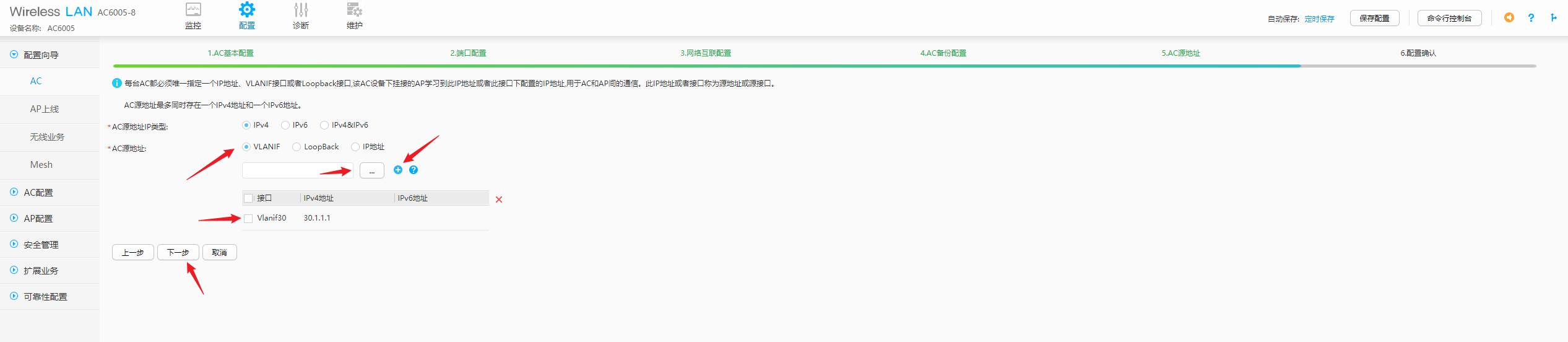 [AC6005-Vlanif5]ip address 30.1.1.1 255.255.255.0