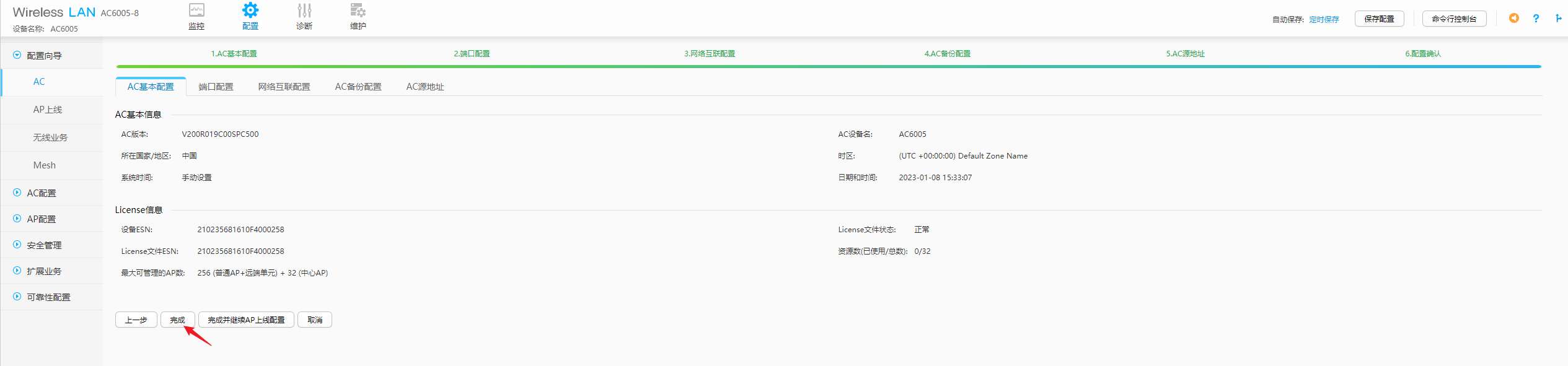 [AC6005]ip route-static 0.0.0.0 0.0.0.0 192.168.5.1 #所有路由指向出口192.168.5.1