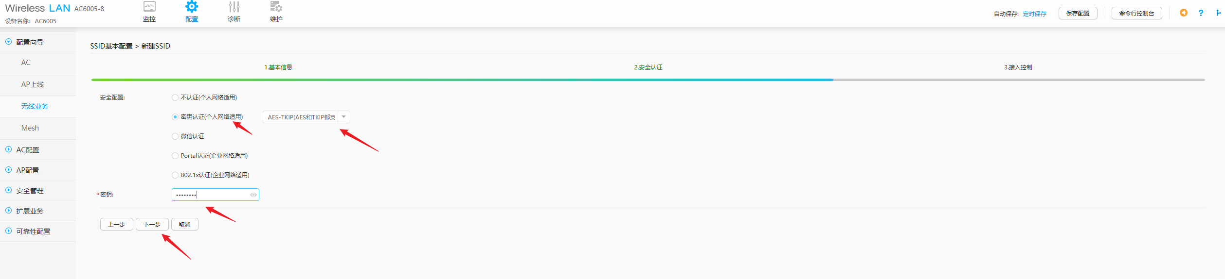 认证模式选择个人网络即可(企业级建议选择统一认证)。
