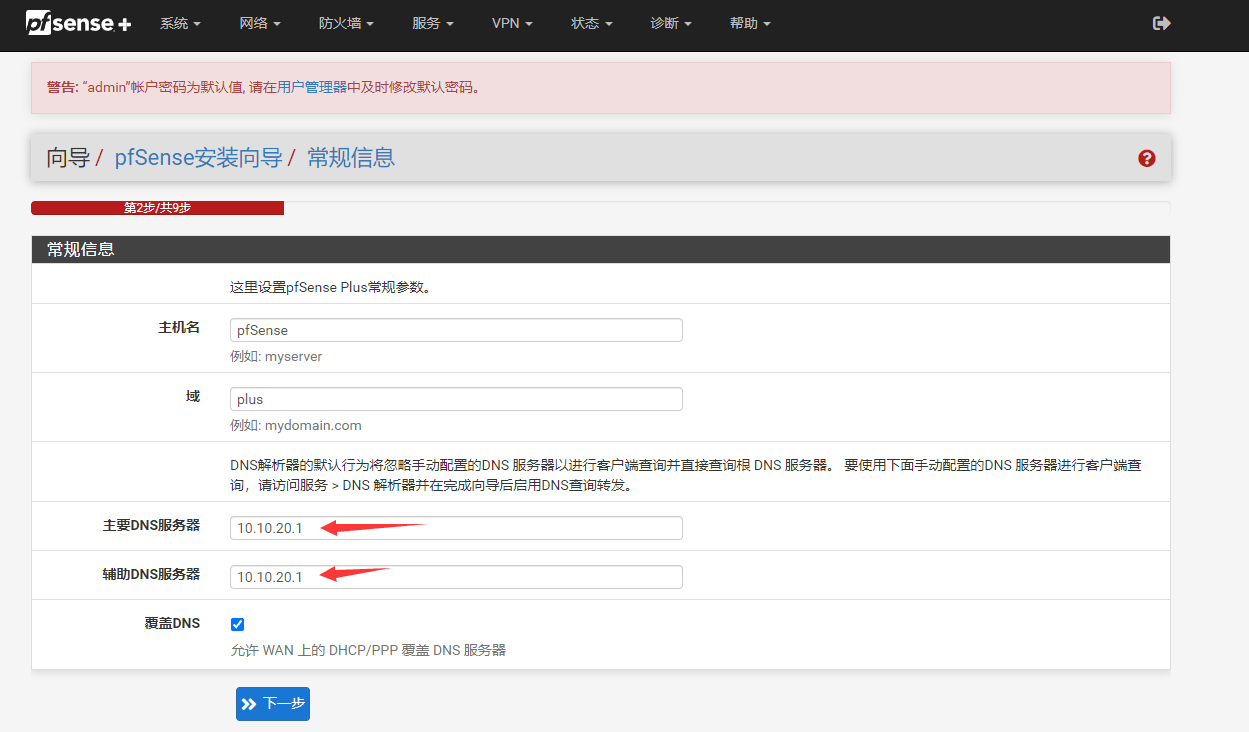 DNS改成你的上级路由地址、ISP提供的DNS或其他公共DNS,本示例使用上级路由器地址10.10.20.1。